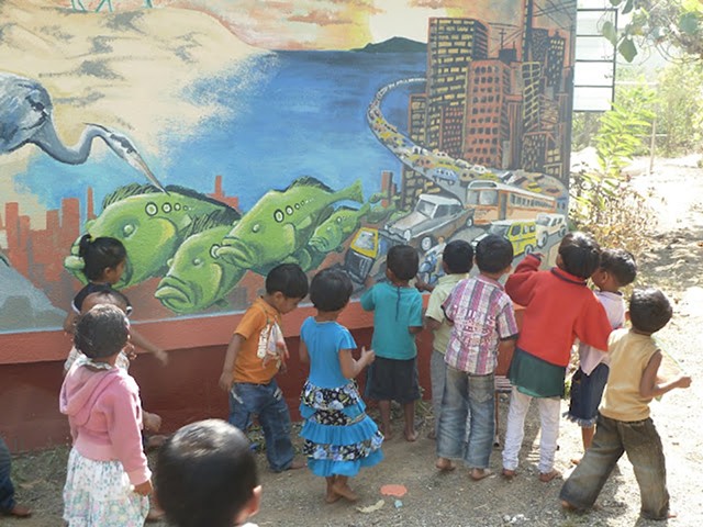 During my month residency at ARCH in 2012, I painted a mural on the campus pre-school and taught painting and drawing to a group of teenage young women at the Keidy Residential School. ARCH also facilitated my travel to other more remote schools to lead daily art workshops.